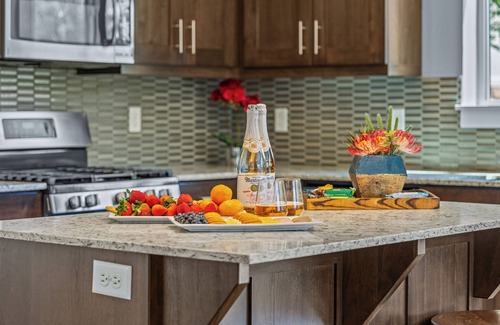 - Fully stocked gourmet kitchen with mixing bowls, pots and pans, mixer, blender, griddle, Keurig, a standard coffee maker, basic cooking staples, coffee filters, aluminum foil, plastic wrap, napkins, Ziplock bags, and more