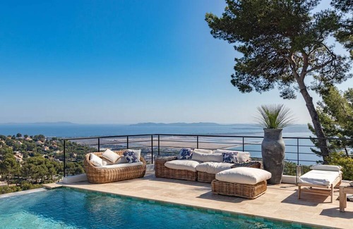 Exceptional villa - panoramic view - sleeps 10 - pool - near beach is located in Hyeres. Exceptional villa - panoramic view - sleeps 10 - pool - near beach provides accommodation, featuring Wellness Facilities, Fireplace/Heating, Internet, among other amenities. This Villa features Wellness Facilities, Fireplace/Heating, Internet, to make your stay a comfortable one.