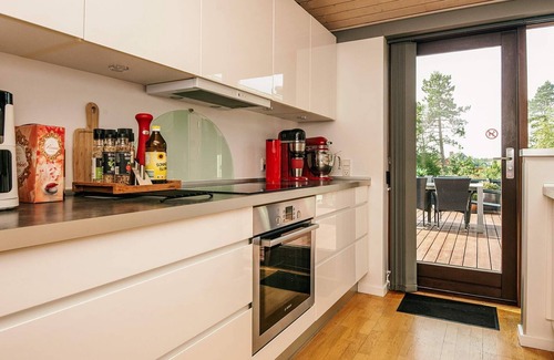 An exclusive and architectural designed holiday cottage of high quality materials, and whirlpool for 2 persons and sauna. The house is bright and spacious and has 2 bathrooms, whereas one of them has the spa facilities. The functional kitchen is equipped with all you need of domestic appliances and has an open connection to the dining section and living room. From here you can access the south/west facing terrace of wooden materials. There is galvanized table with granite table top + 6 chairs with seat cushions + 2 sunbeds with cushion There is an outdoor kitchen by the terrace. All rooms have a high-beamed ceiling and there is a great inflow of light all over. There is plenty of closet space in all rooms. The house is within walking distance of a golf course. There are wide doors without doorsteps, making this a wheelchair friendly house.A refundable deposit might be charged closer to your check-in date. The security deposit ensures a smooth stay and covers any additional services or consumption charges.This deposit covers utilities consumed during your stay and any additional services that may be taken.The final amount will be adjusted based on actual meter readings, actual usage of extra services, and any remaining balance will be refunded within 21 days after checkout.This deposit simply acts as a prepayment for charges that you would anyways pay for, ensuring a seamless stay and check-out experience.