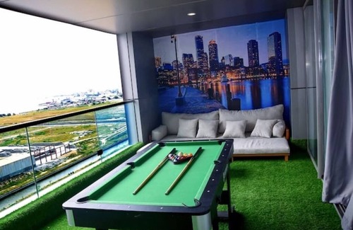 with everything you ever dreamt of at your finger tips you never want to leave this 3bed condon situated in the iconic Eko Atlantic city, located in heart of Victoria island, Lagos. This space offers modern facilities, uninterrupted power supply and wi-fi, surrounded by exotic furnishings. the partial pool & full ocean view from the living room and balcony mixed with tranquillity gives it a blend of relaxation and sophistication creating an ideal place for romantic get aways & family Vacations.