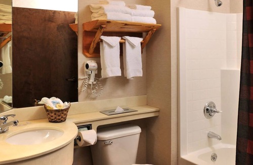 Immerse yourself in history at our quaint hotel next to the Pony Express Museum and River Bluff Trail Park. Relish the Old West vibe, themed suites with rich wood furnishings, and modern comforts like a fitness room, pool, bar, and complimentary breakfast. Perfectly situated for exploring local attractions and trails, our warm service, delectable American cuisine, and rustic charm offer a timeless escape. Experience a unique adventure at our inviting woodland haven.