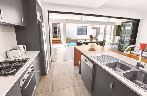 Guests have exclusive access to the entire house, including the garage and private pool. Just a five-minute walk away, a local health club features a 25m lap pool, gym, and sauna, with casual visits starting at $15.