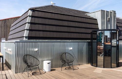 Layout: On the 3rd floor: (Living room(double sofa bed, TV(satellite), air conditioning), dining room(dining table), open kitchen(hob(induction), electric kettle, toaster, coffee machine, oven, microwave, fridge, freezer, dishes and cutlery), bedroom(double bed), bathroom(shower, washbasin, toilet), toilet(toilet)) Internet access, tumble dryer, washing machine, balcony, terrace(68 m2), lift, ironing board, iron, hairdryer