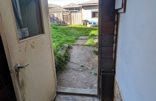 Access through the lane and back gate to enter the back yard. Basement door is straight ahead.