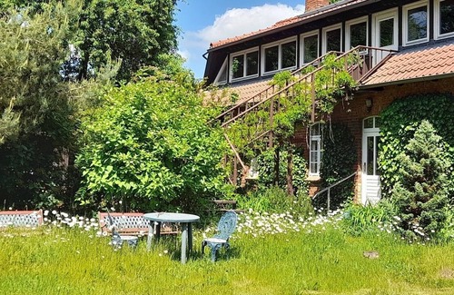 The holiday flats are located in the Mecklenburg Lake District surrounded by the Nossentiner/ Schwinzer Heide Nature Park. Only 20 km north of Waren/Müritz and bordering Mecklenburg Switzerland.Surrounded by beautiful lakes, nestled in beautiful nature and next to the Blücherhof estate with its famous dendrological park.Our holiday flats are located in an old farmhouse and in the house by the castle park.The flats are quietly situated with large house gardens and plenty of space to relax.The nearest bathing area at the beautiful Flachsee can be reached in approx. 800 m.