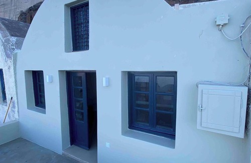 Traditional house in the old village "οld Port Fira". Right under Caldera, it comprises of 2 apartments, open plan, with two levels each, one double bed on ground level and one bed on the internal floor, renovated in 2023 to host 8-10 pers. in 4 double beds & 3 baths, plus two safas. Each apt w separate entrance & small terrace, has high, arched ceilings & internal loft.