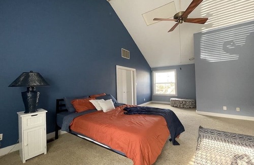 This house features private driveway, vaulted ceilings, and two master bedrooms with full on suite bath plus a half bath downstairs for guests. The upstairs loft suite overlooks your living space and feature picturesque windows.