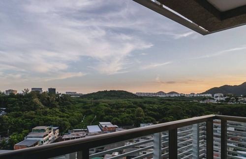 Hospede-se neste flat moderno e confortável em Jacarepaguá, no Rio de Janeiro, e desfrute de uma estadia inesquecível. Com vista para as montanhas e uma estrutura completa, o espaço acomoda 2 pessoas e conta com ar-condicionado, enxoval de cama e banho, máquina lava e seca, além de uma cozinha equipada. No condomínio, aproveite piscina, academia e sauna para relaxar após um dia explorando a cidade.