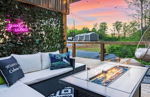 Step through the door onto your private wooden deck to enjoy your morning coffee or evening cocktail. Hanging baskets overflow with vibrant blooms, swaying slightly in the Alabama breeze. Settle into the outdoor couch or swing chair with pops of green, the perfect spot to thumb through a paperback or share stories as twilight approaches.