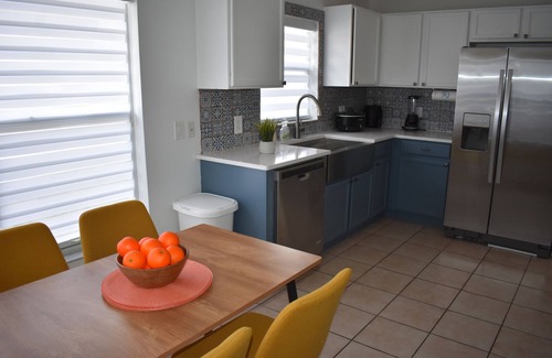 This is a newly refurbished single-story home providing three bedrooms and two bathrooms, accommodating up to 8 guests situated only ten minutes from Walt Disney World Resort and only five minutes from shopping and restaurants. The villa is tastefully decorated with Florida theming throughout combining citrus colors, flamingos and gators! There is a large entrance hallway opening into a family room with lounge seating, 55" flat screen smart TV and dining area. There is a large master bedroom also with flat screen smart TV, king bed and ensuite facilities including garden tub and walk in shower with double vanity sinks. The home also provides a Queen bedroom and themed double bunk room both of which share a house bathroom. There is a fully equipped kitchen with breakfast nook. To the rear of the property, you will find a private swimming pool and sundeck overlooking conservation area. A BBQ grill is provided FREE to all staying guests. Pool heat is available for an additional daily fee. Pets are welcome subject to the additional pet fee of $225 plus taxes.
