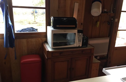 Ideal large family, with its master bedroom, a bedroom with two single beds, a mezzanine with 2 single beds and a corner bunk bed, a beautiful bathroom with bath and double sink, washing machine, separate toilet and kitchen (fridge -congel, microwave, dishwasher, oven and induction hob). All in a wooded cocoon so warm.