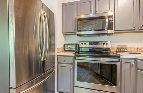 Enjoy sipping wine and casual conversation overlooking your very own forest. Relax on a comfy sofa gazing onto a distinctive slate gas fireplace in the living room or turn your gaze to the expansive windows highlighting phenomenal 🌳forest views. Luxuriate on a 🛏️Queen pillow top bed, featuring luxury linens and comfy pillows. Prepare a meal in our fully stocked stainless steel kitchen which includes five burner electric oven, microwave, toaster, refrigerator, utensils, cookware & Keurig. Full bath w/slate shower, oversized showerhead, plush towels.