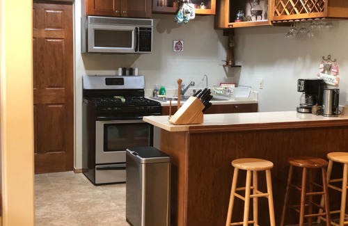 All linens provided, washer and dryer available for use, as well as a hairdryer, ironing board, and iron. We also provide washer detergent, dish soap, shampoo, soap, and body wash, coffee maker, electric teapot, wine bottle opener, and much more, so you don't have to worry about anything during your stay.