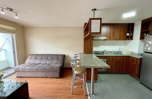 New and beautiful apartment with fine finishes located in the Panoramic condominium, 25 minutes from Jorge Chávez airport, it has services such as Wi-Fi and Netflix, hot water, swimming pool, 24-hour reception and has an ocean view.