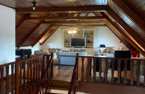 Tucked away in the peaceful Vila Inglesa neighborhood, this beautiful mountain home is the perfect retreat for families and friends looking to unwind in style. With seven cozy bedrooms, the house comfortably accommodates up to 12 guests, offering plenty of space to relax, connect, and enjoy the fresh mountain air. Whether you're curling up by the fireplace with a good book or gathering for a delicious meal, every corner of this home is designed for comfort.