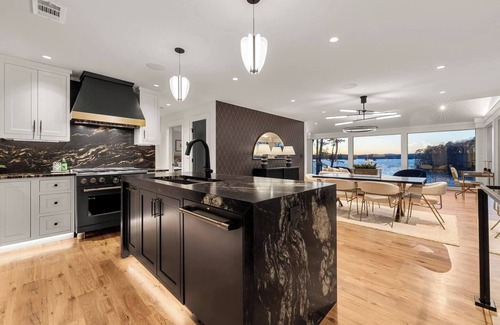 This architectural gem features open-concept living, high-end black and gold finishes, and lakefront elegance. The chef’s kitchen is a showstopper with dramatic stone countertops, high-end appliances, and modern lighting. Expansive windows bring the beauty of Lake Lanier inside.