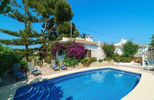 Beautiful and romantic villa with private pool in Jávea, Costa Blanca, Spain for 6 people. The house is situated in a residential beach area, close to restaurants, bars, a tennis court, and 4 km from El Arenal, Jávea beach. The house has 3 bedrooms and 2 bathrooms. The accommodation offers privacy, a beautiful lawned garden with trees, and a beautiful pool. Its comfort and the proximity to the beach, shopping areas, sports activities, places to go out, sights, and culture make this a fine villa to spend your holidays in Spain with family or friends.