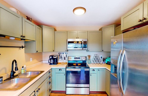 Come back to your sweet home away from home and step in through the front door to find a wide and spacious living area, brimming with all-natural sunlight and plenty of comfortable furnishings to house you and your friends around the TV. You're sure to feel welcome at this humble abode as you take in its cabin-like aesthetic, from the pictures and paintings adorning the walls to its various knick-knacks. Your canine companions will have plenty of space to zoom around at this home as well. If you and your guests are feeling hungry, take advantage of the stainless steel appliances in the full kitchen. Step out onto the balcony and gaze out at this once-in-a-lifetime view of the rolling mountains off in the distance. Sip on a nice hot cup of coffee, then come back inside and warm up beside the fireplace with a cozy blanket. Then, end the night by streaming your favorite movie and snacking on some candy and popcorn. There's something for everyone here!