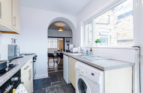 Gorgeous 2 bed house, Sleeps 6, Pet-friendly, Free parking is located in Elland. Gorgeous 2 bed house, Sleeps 6, Pet-friendly, Free parking provides accommodation, featuring Kitchen, Parking, TV, among other amenities. This House features Kitchen, Parking, TV, to make your stay a comfortable one.