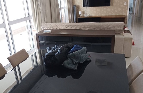 Apartment of 156m2 composed of three suites and closets built into all rooms. Large living room with two rooms with access to kitchen area and large balcony with a gourmet space. Internet fiber and three TVs.