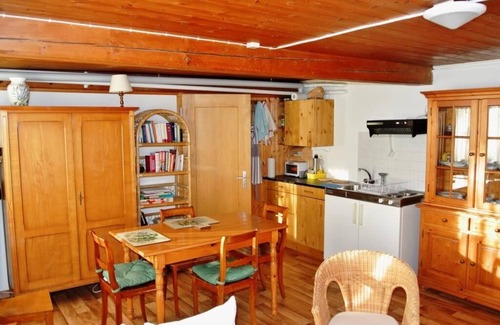 Ground floor: Small holiday apartment (floor area: 32 m2) with private entrance, living room with sitting area (sofa bed), dining and kitchen area, bedroom with 2 beds 1 person, shower room. Facilities: TV (23 channels), DVD player, radio / CD / cassette, library, board games, WiFi. Perfect for 2 adults, can also accomodate a family with 1-2 children.