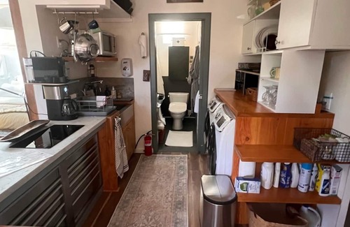 3 blocks from the Pacific Ocean, in the heart of Santa Monica Mountains, experience SoCal life in our one bedroom guest cabin. Walking distance to the newly refurbished Caruso Palisades Village. Pacific Palisades, is the best kept secret of Southern California, now updated with a new theater with 5 screens, an assortment of shopping and dining on par with the Hamptons. The school system is the best in Southern California. Enjoy this special space.