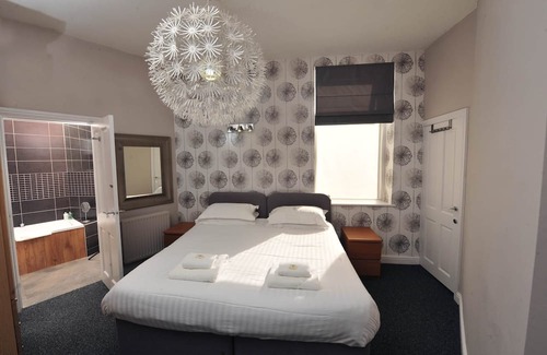 Two adjacent duplex Apartments opposite the Harrogate Convention Centre on the King’s Road. Each with their own private entrance door. Sleeps up to 14 guests. Offering plenty of space and privacy equivalent to 5 hotel rooms for larger business or leisure groups. All bedrooms have a super-king bed which can split to twins by request. Apartment One ( 3 bedrooms) The first apartment is accessed by a ground floor front door and has a lounge, sofa bed (sleeps an additional 2 guests) dining table and 6 chairs, SMART TV. Fully fitted kitchen for self catering with double fan oven, gas hob, toaster, kettle, dishwasher, fridge / freezer, Nespresso machine & washer/dryer. Separate cloakroom with WC and basin. Bedroom One – super-king bedroom, with a wall mounted SMART TV, en-suite bathroom with a shower over bath.Downstairs there are two further super-king bedrooms. Bedroom Two – super-king bed, SMART TV, chest of drawers, hanging space, en-suite bathroom with shower over bath. Bedroom Three – super-king bed, SMART TV, wardrobe and an en-suite shower room. Apartment Two (2 bedrooms) Private front door into its own hall way. Large well equipped kitchen with oven, induction hob, American fridge freezer, combination microwave oven, built in bean to cup coffee machine, dishwasher and is fully equipped for meal preparation and service. The lounge has a king size sofa bed (sleeps additional 2 guests), large screen cable TV, free Wi-fi, sound bar, dining table and 6 chairs. Downstairs there are 2 super-king bedrooms. Bedroom One – super-king bed, wall mounted TV with VIRGIN, chest of drawers, wardrobe, dressing table with vanity mirror and an en-suite walk in shower room. Bedroom Two – super-king bed, and a wardrobe. Luxury house bathroom with large platform bath with shower over, underfloor heating, wall mounted WC and basin.