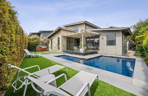 Haven Beach House is a luxurious coastal retreat located just a short stroll from White’s Beach and The Sands Golf Club. This spacious, resort-style home features four beautifully appointed bedrooms, four luxe bathrooms, and an inviting pool. Designed for easy indoor-outdoor living, it’s perfect for families and groups looking for a relaxing getaway on Victoria’s Surf Coast. With modern amenities, Wi-Fi, and plenty of space to unwind, this home offers everything you need for a memorable stay.