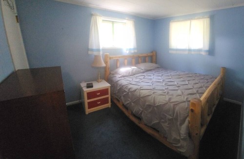 The house sits on one wooded acre of land populated with white birch, maple, and evergreen trees. Relax on the spacious deck as you enjoy the lake view. Grill on the deck or sit around the campfire making smores and memories. We have 2 bedrooms with a queen and full bed. The living room couch converts into a very comfy queen bed as well, overall, sleeping up to 6 adults. The kitchen is fully equipped and the bathroom is fully stocked. For those poor unfortunate souls who must bring work with them, we offer high-speed fiber optics WiFi internet service. Bring your pontoon, canoe, kayak, or paddleboard (just remember not to make a wake). Our dock can accommodate boat tie-ups, fishing, swimming, or simply relaxing in the sun. We also have a canoe available for guests to use.