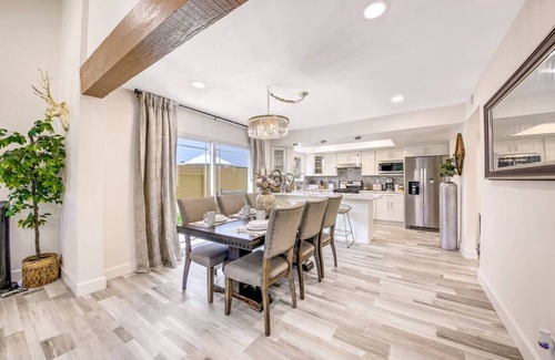 The `Southwestern Vibe` home is an approximately 1200 sqft condo. The condo has 3 bedrooms, 2 full-size bathrooms, 1 powder room, a full kitchen, a living room, and dining with complimentary amenities for your convenience. Our property is equipped with smart TVs in the living room. We also provide many board games for you and your group to enjoy in our game room.
