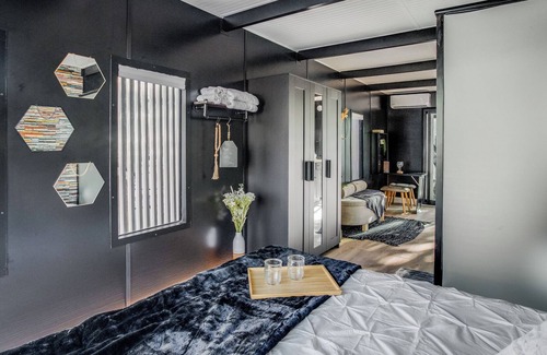 ***HOUSEBOAT*** - This HouseBoat is located directly in the backyard and includes 1 Queen bed, Private shower and bathroom, closet, night stand, private mini kitchen, with fridge and freezer, keurig machine, kitchen utensils etc. Outback is a private patio deck with seating bench! Perfect for relaxing or fishing right off the boat. Top Deck includes a seating lounge, turf grass and the best water views! This HouseBoat is truly 1 of a kind and something you never see!