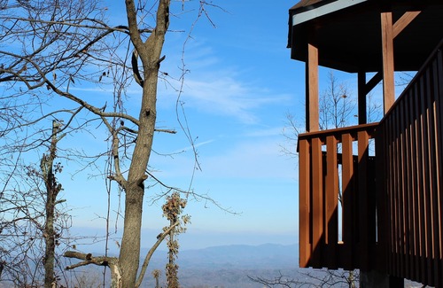Sits atop Chalet Village at Ski Mountain. Enjoy a romantic or small family getaway. Relax on the back deck or Hot tub for bear watching, the lights of Gatlinburg, and the visits of wildlife of the Smokies. Features mountain views and a private setting only 3.7 miles from Gatlinburg and easy access to Pigeon Forge. The clubhouse features pools, tennis, gym, & game room. You will be driving up steep, curvy and winding roads for 15 minutes, but it will be worth it!