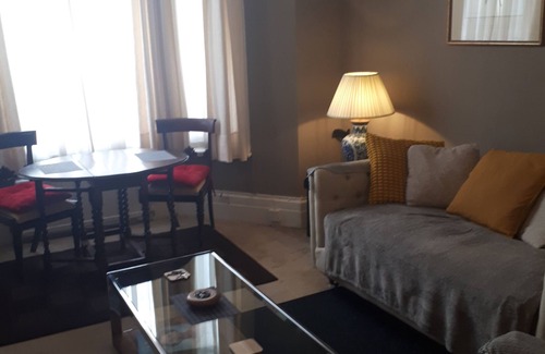 A cosy apartment with high ceilings in the living room and bedroom situated on the raised ground floor with three steps up (note: not in the basement).