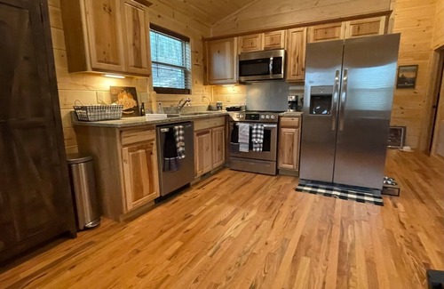 Hiker’s Hideaway is an authentic cabin experience in Nantahala National Forest with breathtaking views & hot tub. It is the perfect retreat for a small family or couple. Constructed in 2021, the cabin includes fully stocked kitchen with granite countertops & new appliances. Includes covered deck w/ grill, outdoor furniture, gas fireplace, high speed fiber WiFi, huge TV, vintage hiking decor & a robust content library. Near fishing, hiking, gem mining, white water rafting, kayaking.