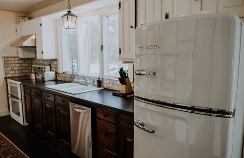 Both bathrooms in the home are chock-full of character. The downstairs bath includes an antique clawfoot tub and shower. For your convenience, we have added a washer/dryer. The upstairs bath, recently installed, features a rustic galvanized bucket shower and classic tile finishes. Toiletries and linens are provided.