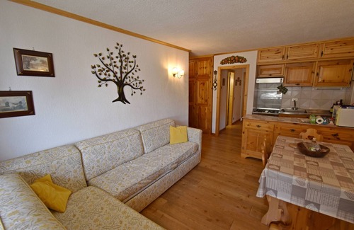 Apartment 4/5 beds composed of entrance, living room with sofa bed, kitchenette, one double bedroom, one bedroom with bunk bed, 2 bathrooms, one with shower and one with bathtub, balcony. It is located on the mezzanine floor of the Hofer house, in a very quiet area close to the woods, just a few steps from the central square of Madonna di Campiglio, shops, markets, restaurants, bars, and services of Madonna di Campiglio. Parking space in the garage.
