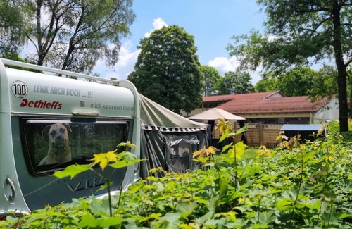 Exclusively equipped Dethleff VIP Exclusive with 240 m² fenced pitch and hiking trails away from the caravan