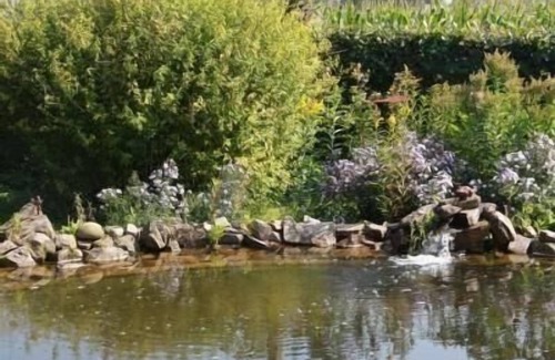 Situated in the scenic border triangle B/NL/D, the holiday home by the pond offers everything you need for a relaxing stay for up to four people. Have breakfast on the terrace and laze in a deckchair after a swim in the natural swimming pond. The region offers numerous destinations for activities in the city or countryside. Hiking or cycling routes are possible in the immediate vicinity.the holiday home by the pond extends over 2 floors with direct access to the 6x13x1.7m natural swimming pond. From the 30 m² living room with French terracotta tiles and a pellet stove, a cosy seating area with sofa and 2 armchairs as well as a dining table with 6 chairs, you have an enchanting view of the pond at any time of year. Large sliding doors turn the garden terraces into a living area in the warmer months. An open passageway leads to the kitchen and a separate shower room with washbasin and WC. On the 1st floor there are 2 tastefully furnished bedrooms, optionally with comfortable double or single beds with a view of the garden or swimming pond.The restored former farmhouse consists of the owners' house and the 2 holiday accommodations Vue au Jardin (2 persons) and Ferienhaus am Teich (max. 4 persons).Each holiday accommodation has a private outdoor area (balcony or terrace)Access is via a single lane road, the Chemin du Bisweg, which is also designated as cycle route Veloroute de Wallonie number 1.Brief descriptionOther : Non-smoking houseShort description 1Number of kitchens : 1Other rooms : Laundry and storage room with washing machine and cleaning utensils.Living room 1Other living room facilities : TV, pellet stoveBedroom 1Other bedroom facilities : oak parquet flooring, antique wardrobe, reading lamps, bedside table, desk, chairBedroom 2Other bedroom facilities : open wardrobe, reading lamps,SurroundingsSports facilities in the surroundings : Golf course, cycling tours, hiking, mountain bikingSurroundings 1Excursion possibilities : Located in the heart of the Euregio Meuse-Rhine and the border triangle B/NL/D near Aachen, the Herver Land captivates with rolling hills, orchards and a characteristic hedgerow landscape. But attractive towns are also less than 30 minutes away. Aachen (D) with the imperial cathedral of Charlemagne, the historic old town, the wellness oasis Carolus Therme, but also Maastricht (NL) as the Dutch shopping centre and Liège (B) with its museums are attractive excursion destinations. The surrounding area is known as a hiking region with three-country hikes and signposted hiking trails directly from the house and the Way of St James (Niederstraße) from Aachen via the Netherlands or Belgium to Paris. Cycling region with a network of cycle paths in the direction of the Netherlands, Germany and Belgium. The annual international horse show CHIO in Aachen attracts visitors from all over the world.local description : Hombourg is a village with 1200 inhabitants and is picturesquely situated on the ridge between Gulp and Göhl. Bakery, grocery shop, pharmacy, the brasserie 'Au Grain D'Orge' and 1 restaurant are located in the village centre around the church. Aachen, Maastricht and Liège are attractive destinations with their individual urban flair. Here you can experience a piece of Europe with its cultural diversity, the three languages German, French and Dutch and the typical regional cuisine.hiking and cycling are possible from the house.other sports and leisure facilities : hikingGarden and outdoor facilitiesGarden equipment : garden furniture, barbecue, swimming pond