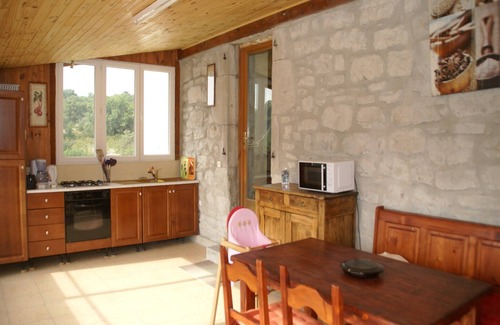 The property lies in the heart of the garrigue, the typical vegetation of the region. This is why the internet connection is not always reliable. Your accommodation has a superb private terrace with garden furniture and plancha, offering a view of nature and the superb swimming pool below, to be shared with a second holiday flat (bookable under reference Belvilla FR-07200-15) and occasionally with the owners.