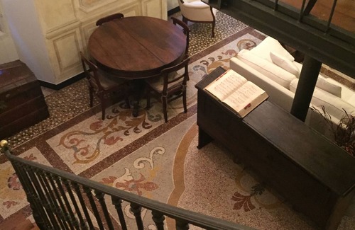 very charming apartment on the first floor of a building of the '500 with lift, perfectly restored d' frescoes, marble fireplace and antique furnishings. It is on two floors, the first large living area with kitchenette, the second on a mezzanine sleeping area and bathroom.