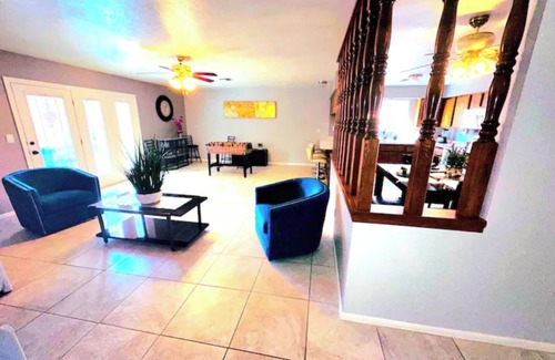 Cozy home away from home. Close to everything Vegas! Warm open floor plan inviting for large families or close friends. Features a large living room with lots of board games and a 3 in one Foosball table. Perfect for family nights or just to keep the kids busy while you relax. In town for the Strip/Fremont Street, Grand Canyon West or catch a Raiders game. Family and Friends will be within minutes of downtown, shopping centers and restaurants when you stay at this centrally-located place.