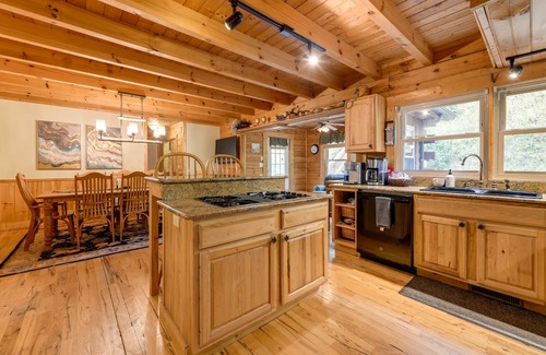 Surrounded by acres of lush forest, this 4-bed, 4.5-bath vacation rental is a peaceful respite with all the comforts of a home! Admire the fall colors or shred the slopes of Cataloochee Ski area in the winter. In the summer, explore the Smoky Mountain trails. Return to the cabin and soak in the hot tub or spa or simply relax by the fire pit.