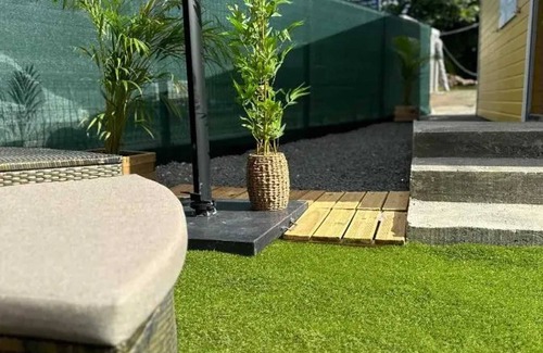 Enjoy the wonderful outdoor space featuring a cozy terrace equipped with sun loungers and a barbecue for unforgettable summer evenings under the stars. The enclosed garden provides a private setting for your outdoor moments, perfect for relaxing or playing with a pet if you choose to bring one. Parking space is included for your convenience.