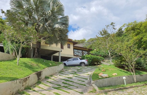 Large living room with 42 'TV with hdtv and parabolic light. WI-FI. House w / 4 suites with air conditioner, lcd tv, parabolic, closet, another room with air, which is small (4sqm) and faces the outside area at the back of the house. Toilet, large living room, American kitchen with built-in cabinets, refrigerator bíplex, microwave and etc. 400 thread count linens and face towels are provided. House well ventilated, surrounded by very green. Pool with stingray and deck overlooking the sea, sauna also with sea view and all private barbecue of the house. Garage for 4/5 cars, sea view from the bedrooms and living room. The house is in a gated community, in a very quiet cul-de-sac, neighbor only on one side because on the other has a green area of approximately 800 m². Tennis court with synthetic grass. The house is in a very quiet part of geriba, with easy access to the beach, without congestion and turmoil.