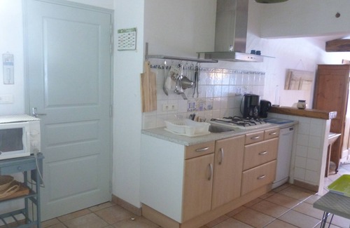 Comfortable house with 2 internal steps - at the end of a cul-de-sac - approximately 60 m² - comprising a living/dining room with fireplace (trap door to be opened before use), fitted kitchenette, one bedroom with a queen-size bed, one bedroom with two single beds, a shower room, a toilet, and a bicycle garage. Washing machine, oven, microwave, dishwasher, freezer, and flat-screen TV. Terrace with garden furniture accessible via a few steps, 4 sun loungers, barbecue, and awning. Parking on the property (never park in the cul-de-sac). Enclosed garden. Pets allowed. A cleaning fee of €97 is available. Optional and non-included services, to be reserved 1 month prior to arrival and subject to availability: