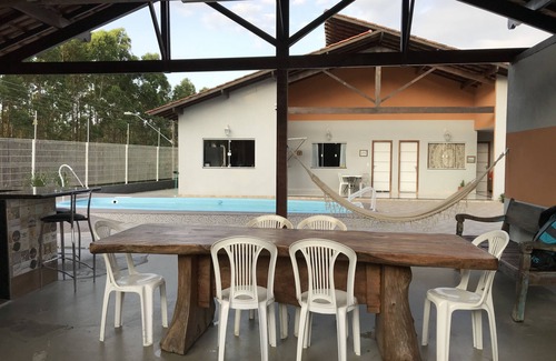 Large house with 03 individual suites + 2 rooms, one attached to the kitchen and the other outside the house. (Complete barbecue kiosk, with bathroom, horizontal freezer, sink and refrigerator totally independent of the house) and Swimming pool with waterfall.