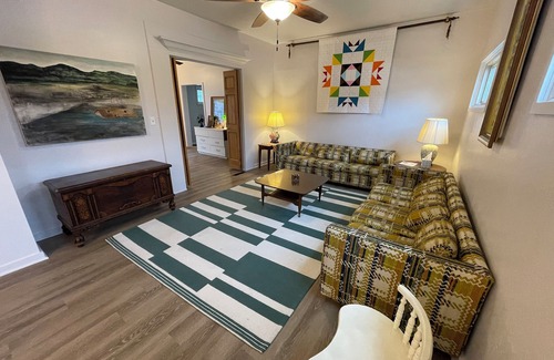 Welcome to House of Funk, a clean, convenient, and welcoming home in the heart of Des Moines's vibrant Drake Neighborhood, lovingly known as Dogtown. While it’s not fancy or frilly, this Queer-owned and operated space is thoughtfully curated to ensure your stay is comfortable, fun, and memorable.