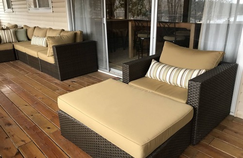 Enjoy a peaceful vacation in beautiful Cherokee Village! This house is very homey and comfortable. The fully screened in deck over-looks Lake Sequoyah. Perfect place to enjoy a cup of coffee in the morning or just chill on the cushioned lounge sofa. This home sleeps up to 8 adults. Children welcome too! The den has two bunks.