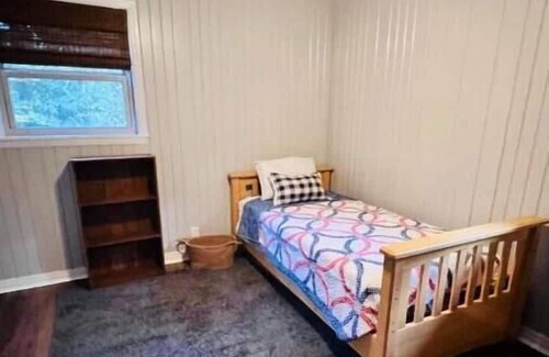 Relax with the whole family at this fully remodeled house in a small, secluded, quiet neighborhood. You will find a fully stocked kitchen complete with a dishwasher. The dining area has seating for up to eight at the dining table and bar. Living area has new smart tv, WiFi provided. 3 bedrooms, 1 -King, 1 - Queen, and 1 -Twin. Bathroom has a shower/tub combo. Grill and chill on the back deck overlooking a peaceful wooded backyard.
