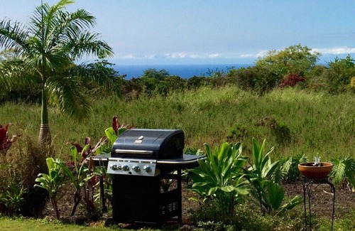 Apartment Description: This spacious, well appointed apartment, with newly remodeled kitchen and bathroom, is located in Kailua-Kona, Big Island, on one acre of land, on a private road, and overlooks 15 acres of grassland and jungle, with background ocean views. At 938 feet above sea level, the property enjoys morning and evening breezes, cooler temperatures, and spectacular sunsets.